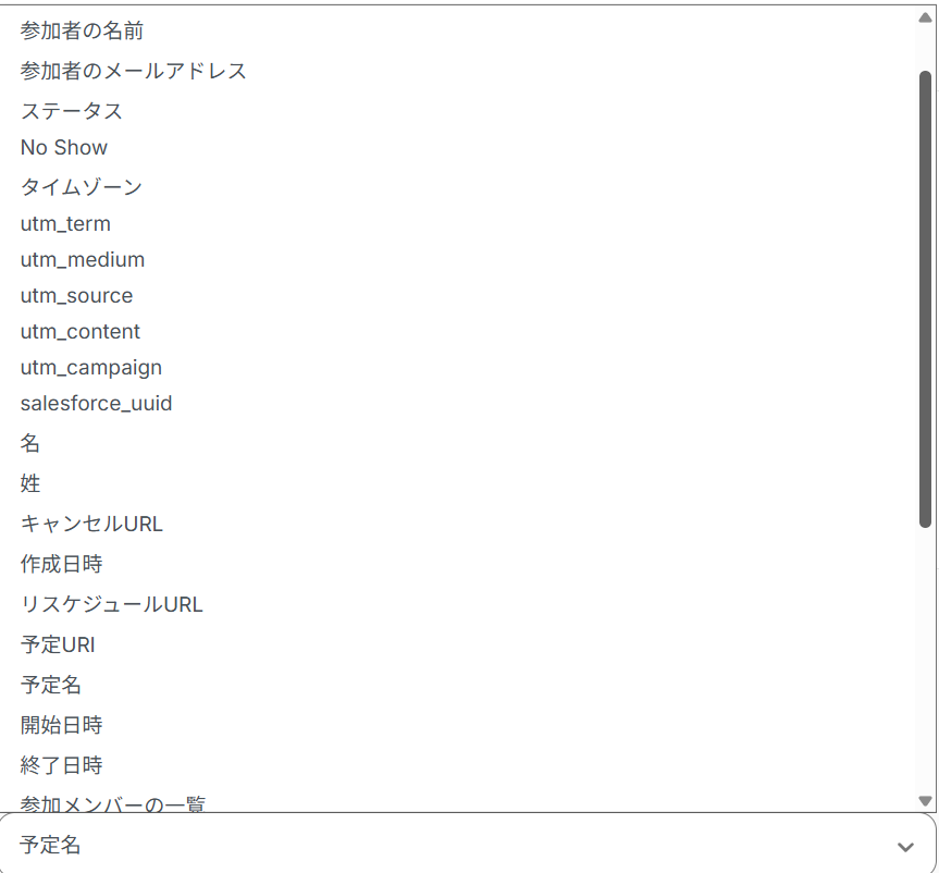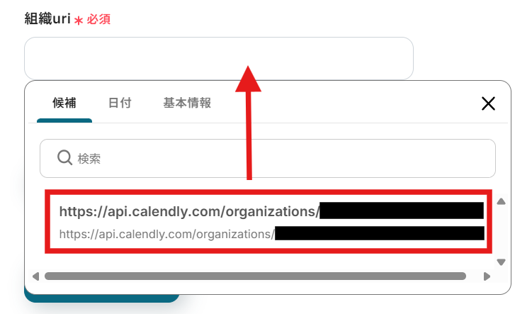 入力欄をクリックすると連携したアカウントに基づいた選択肢が表示されますので、候補の中から選びましょう。