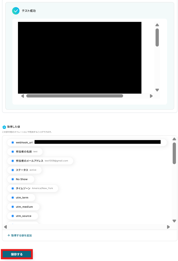 確認できたら、Yoomの画面に戻り「保存する」をクリックします。