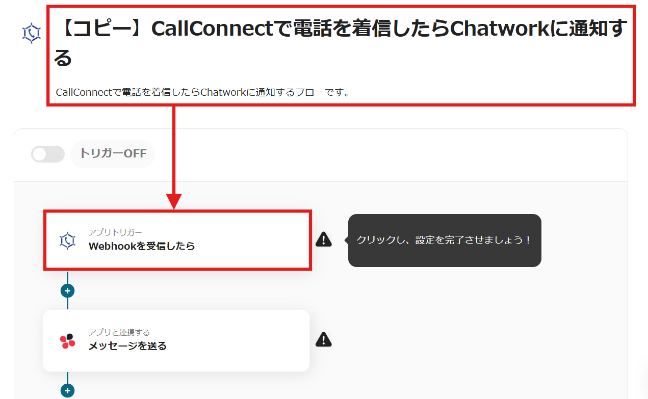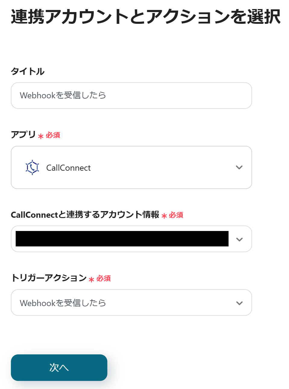 最初にCallConnectの設定を行うので、「Webhookを受信したら」をクリックします。