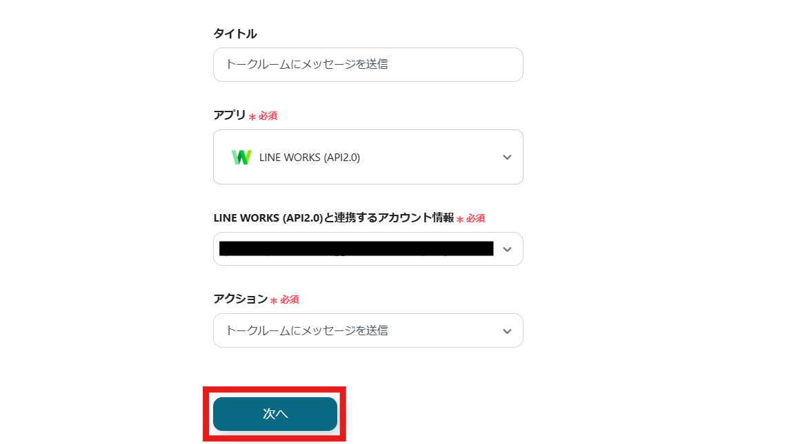 2.LINE WORKSと連携するアカウント情報を入力します。