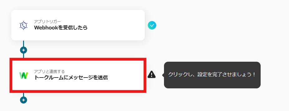 1.フローに戻ります。最後に、「トークルームにメッセージを送信」のアイコンをクリックしてください。