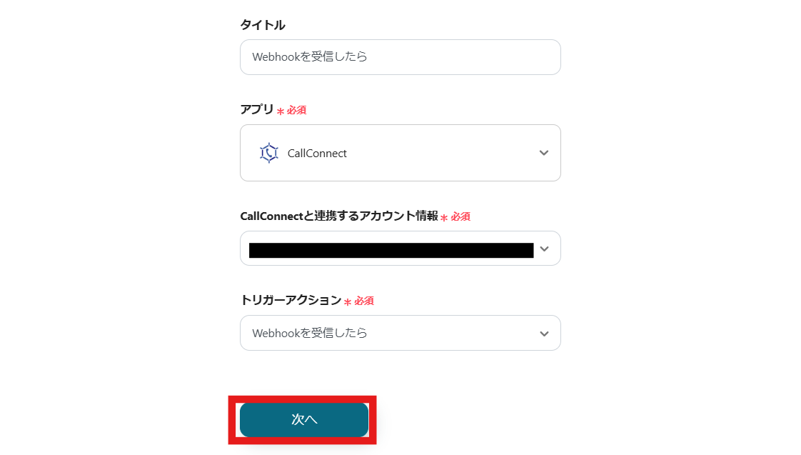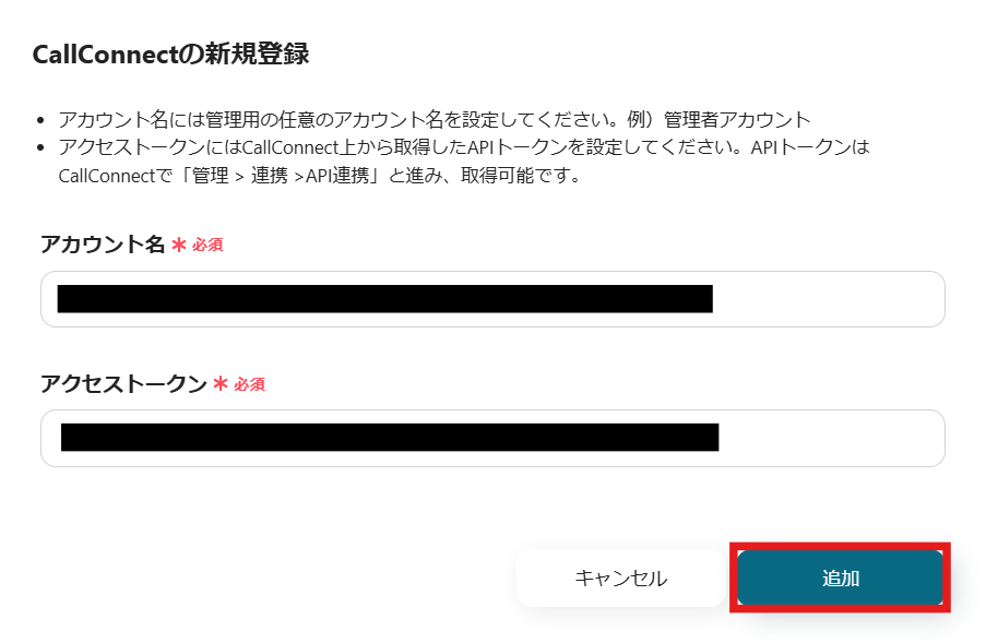 CallConnectと連携するアカウント情報を入力します。