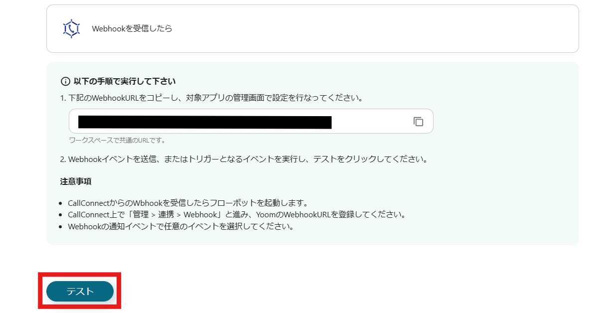 3.WebhookURLをコピーし、管理画面で設定してください。