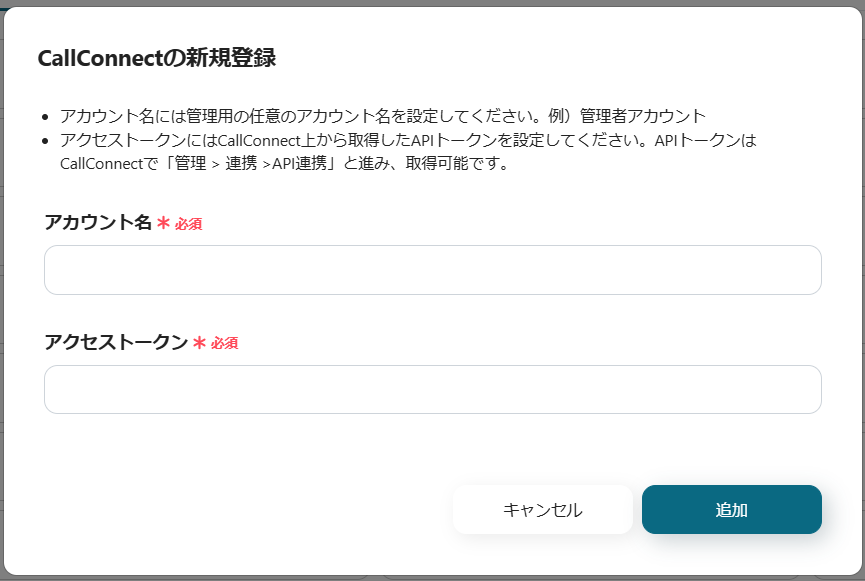 ・アカウント名とアクセストークンを入力し、「追加」をクリックすると、マイアプリに登録が完了します。