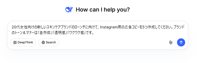 DeepSeekの高速処理能力を活かし、InstagramやX向けの投稿案をハッシュタグ付きで数十件単位ですぐに作成可能。