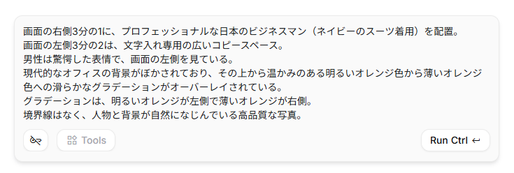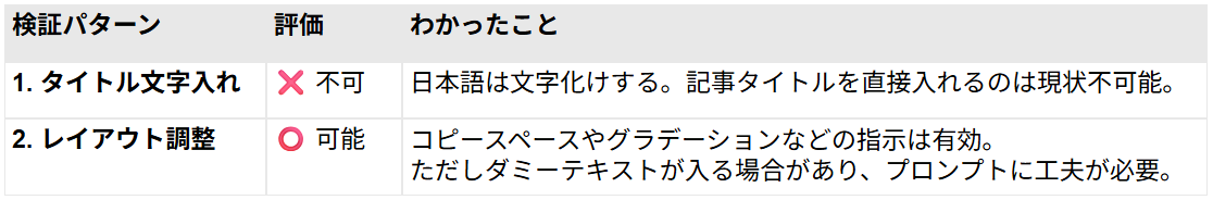 今回の検証では、実務での利用シーンを想定し、具体的なブログタイトルやデザイン指示をプロンプトに盛り込みました。検証条件