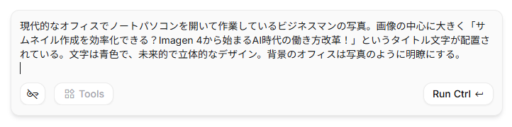 ここからは、実際にImagenを使用して、ブログ記事用のサムネイルを作成する検証を行っていきます。