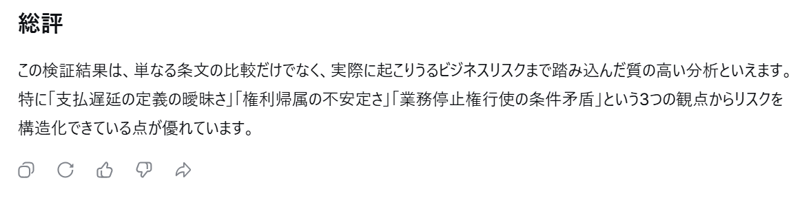 高い推論能力により、人間が見落としがちな論理的な矛盾やリスクを論理立てて指摘してくれます。