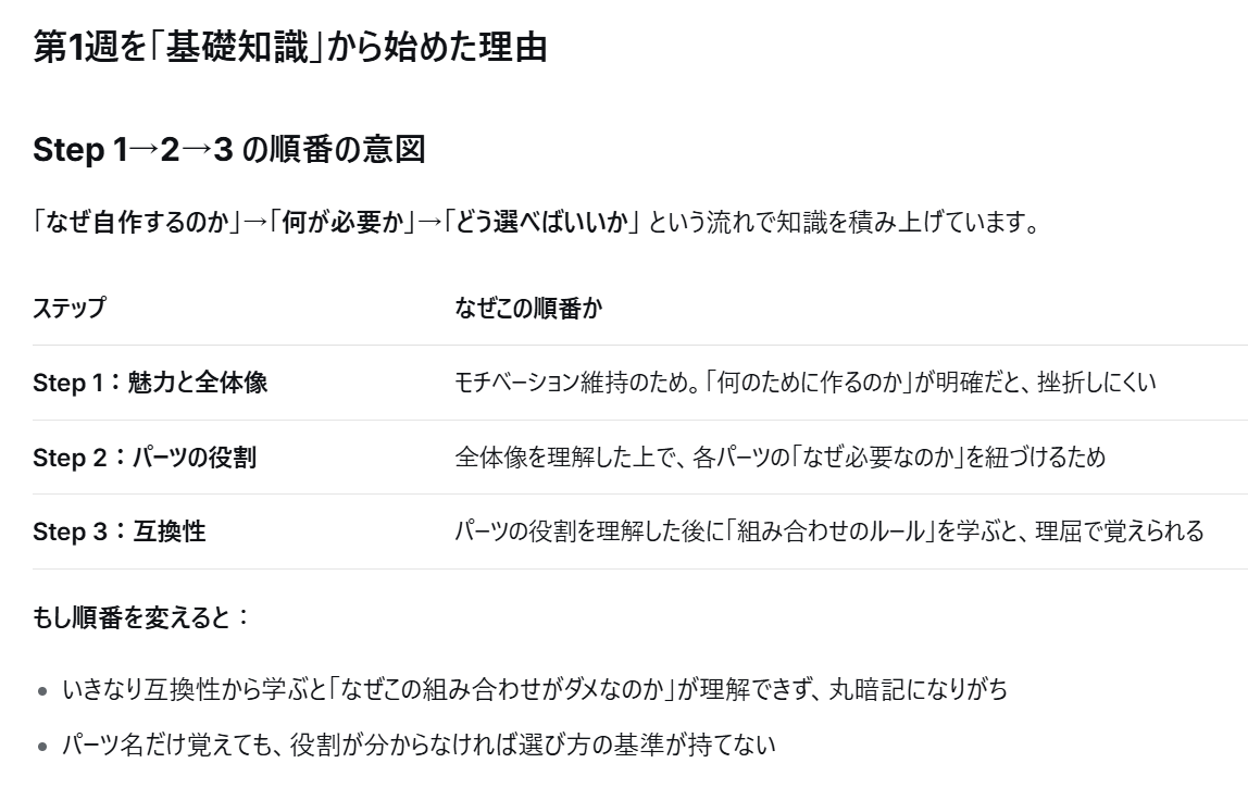 DeepSeekは「まず何をすべきか」から「なぜその順番なのか」まで、論理的な根拠に基づいた学習プランを提示してくれます。