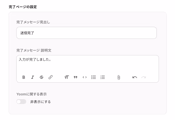 「完了ページの設定」は、以下を参考に設定してみてください。