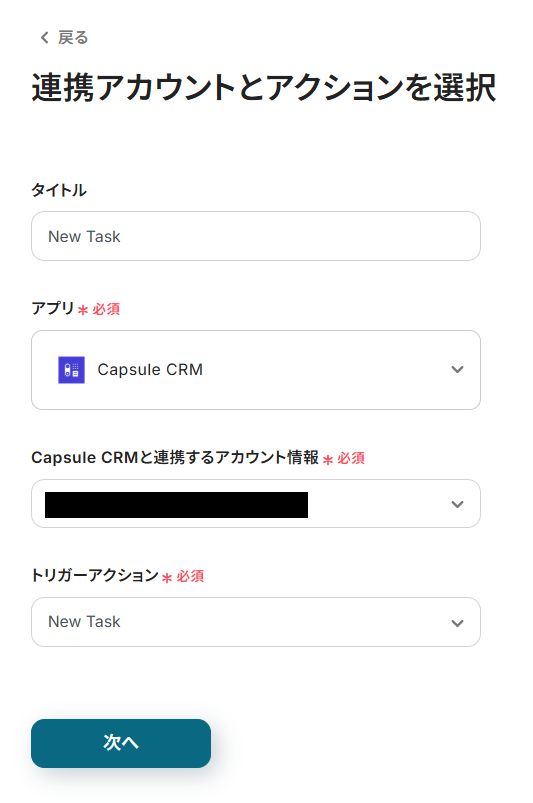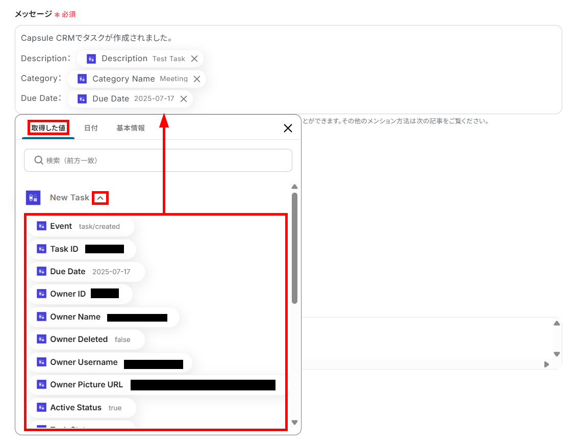 Capsule CRMに作成したタスク情報を利用する場合は、候補から任意の項目を設定してください。