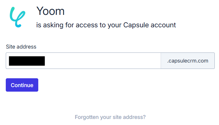 Site addressを入力して、Continueをクリックします。