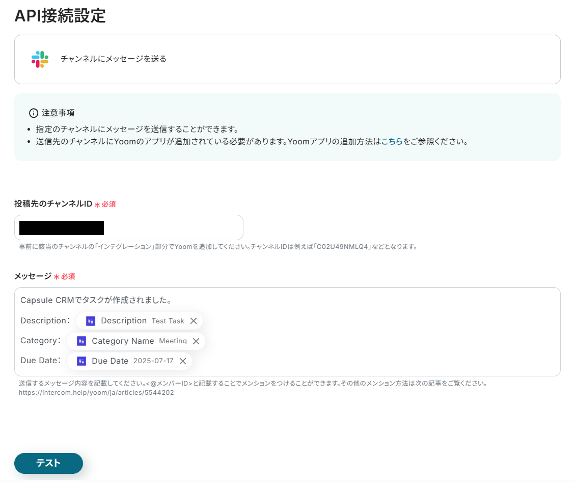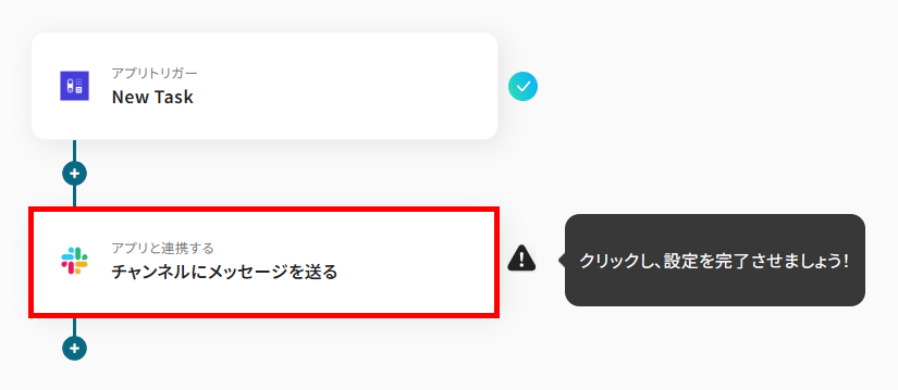 最後に、Capsule CRMにタスクが作成されたことをSlackに通知する設定を行います。