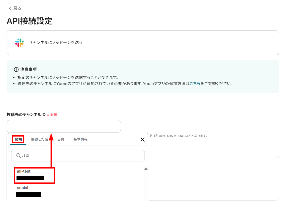 投稿先のチャンネルIDを候補から設定しましょう。