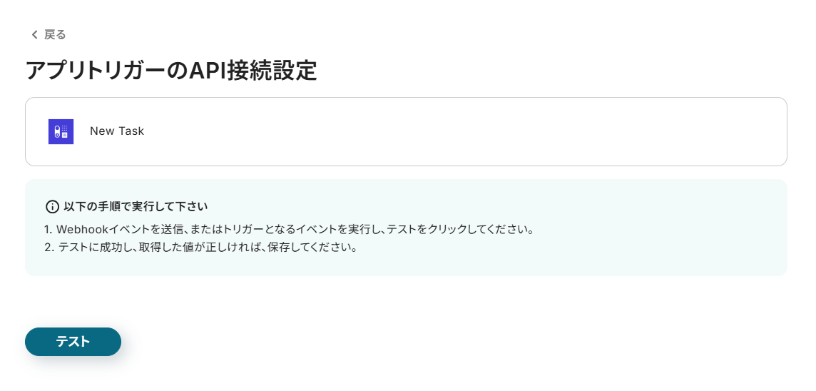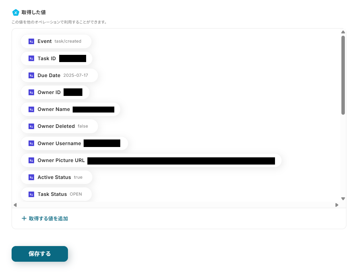テストが成功すると、作成したタスク情報が取得されるので保存してください。
