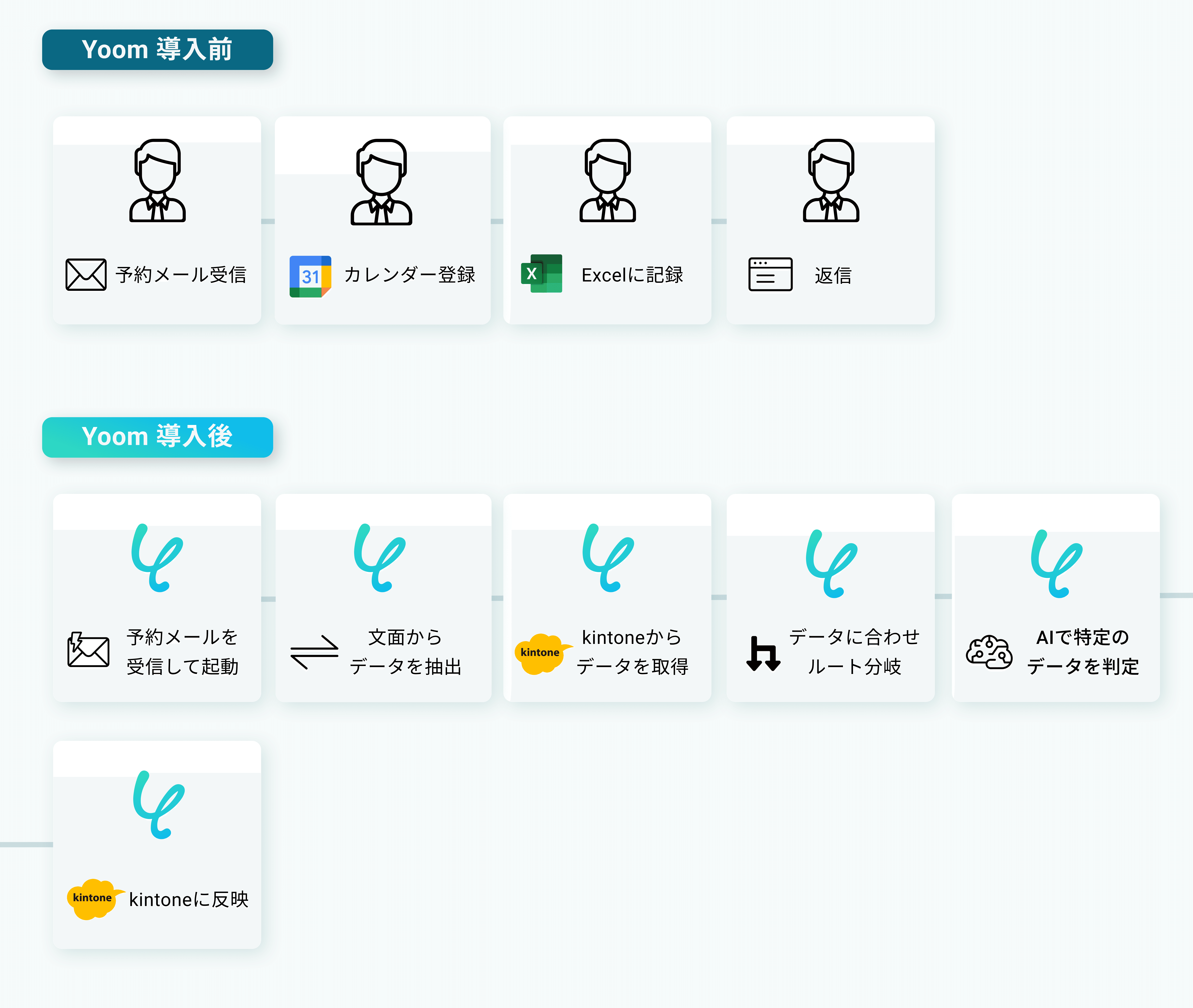 kintoneを基幹データベースとし、Yoomを「ハブ」として活用することで予約管理や商品発注フローを劇的に効率化した裏側に迫ります。