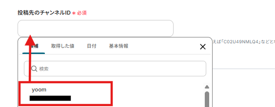 投稿先のチャンネルは、以下のように表示される候補から選択します。