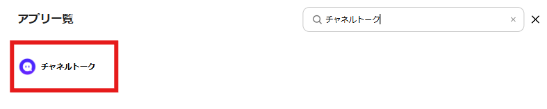 検索窓にチャネルトークと入力し、候補に表示されるチャネルトークをクリックします。
