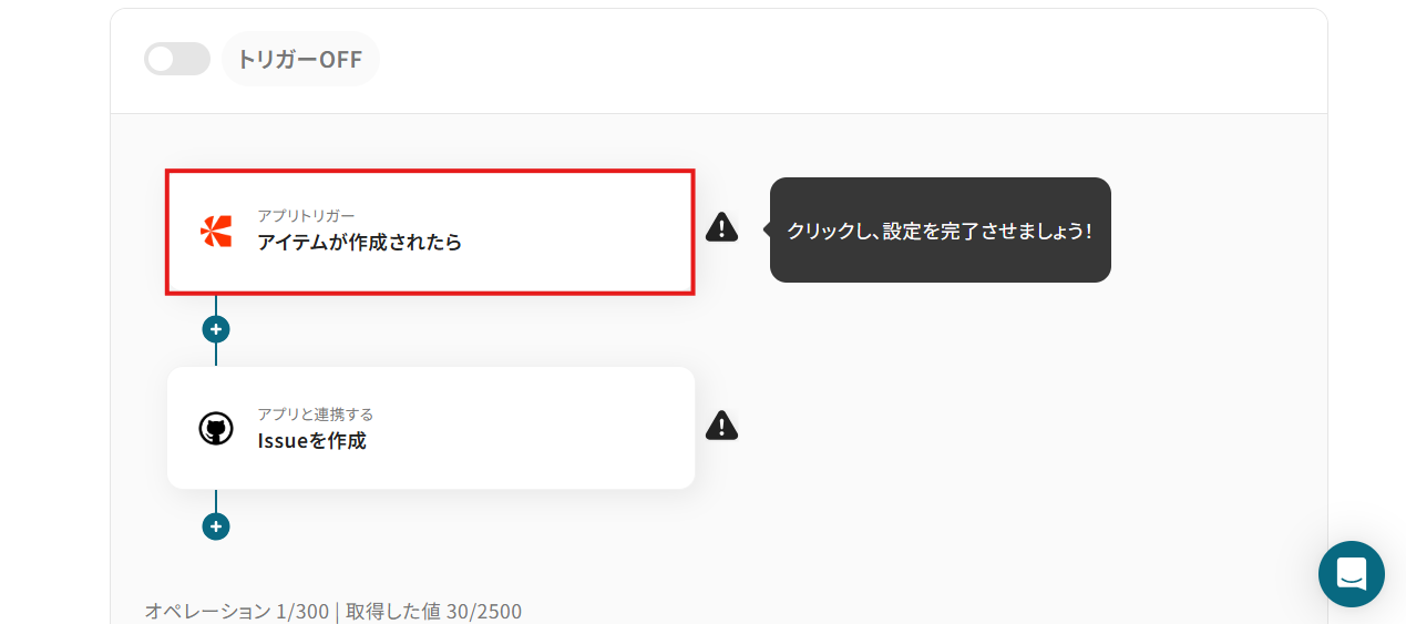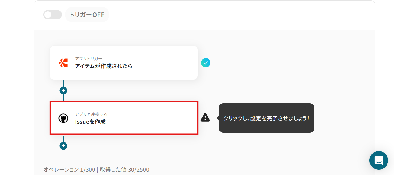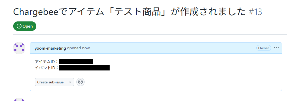 これで、「Chargebeeでアイテムが作成されたら、GitHubでIssueを作成する」フローの完成です!