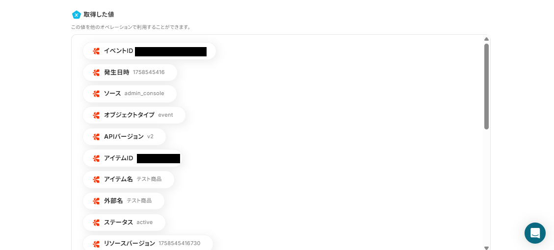 内容は、Chargebeeのアイテムに登録した「アイテムID」「イベントID」が自動で反映されるように設定済みです。