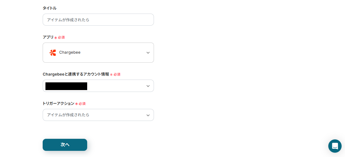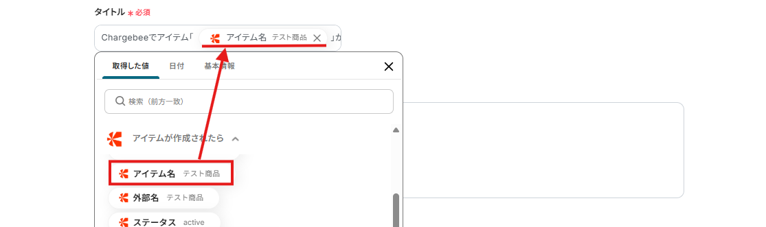タイトルは、一例としてChargebeeの「アイテム名」が自動で反映されるように設定されています。