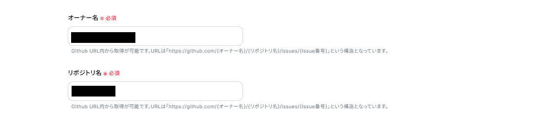 オーナー名とリポジトリ名は、枠外の注釈を参考にGitHubURL内から取得し設定してください。