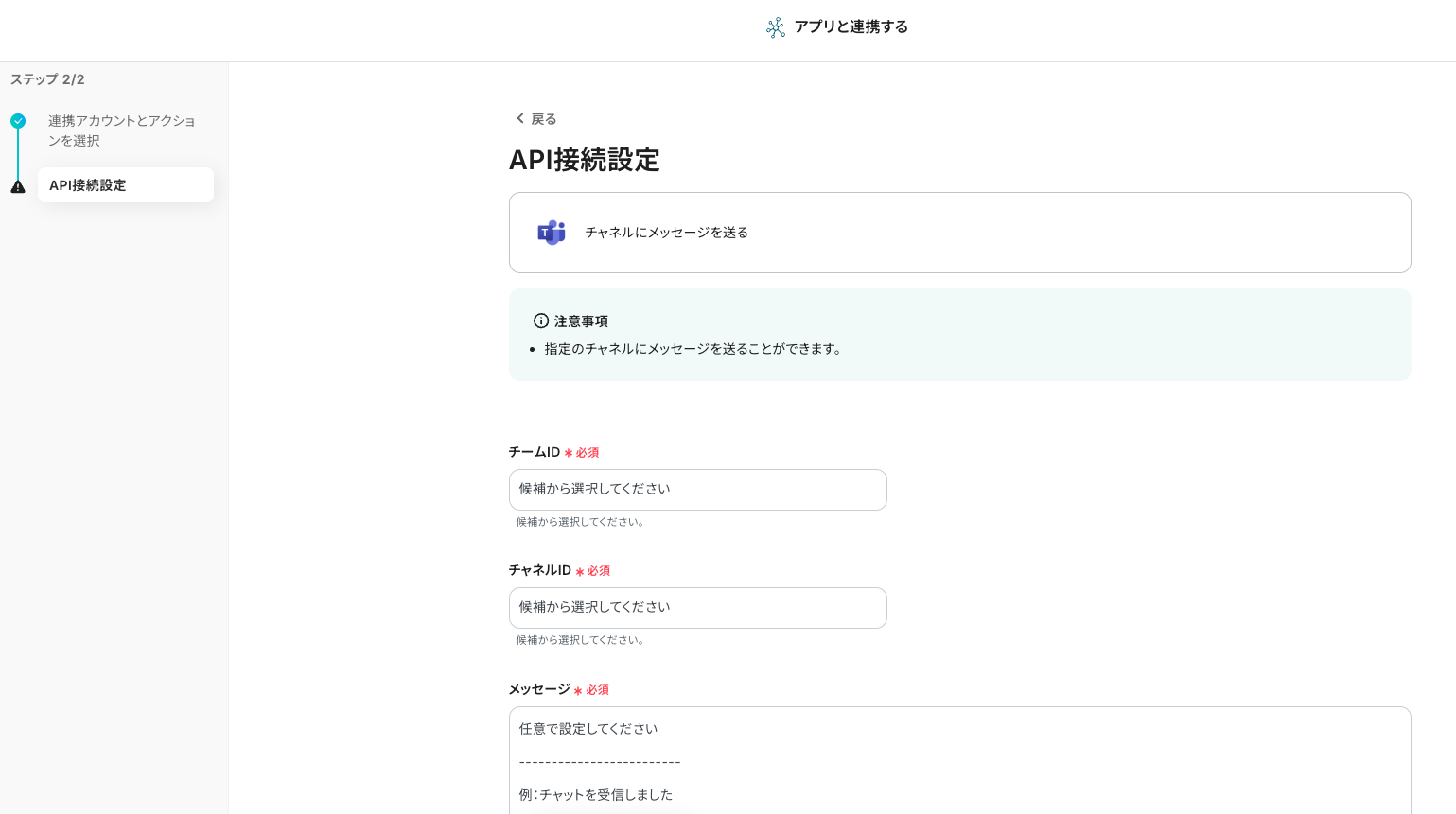 ステップ4:アプリと連携する「チャネルにメッセージを送る」