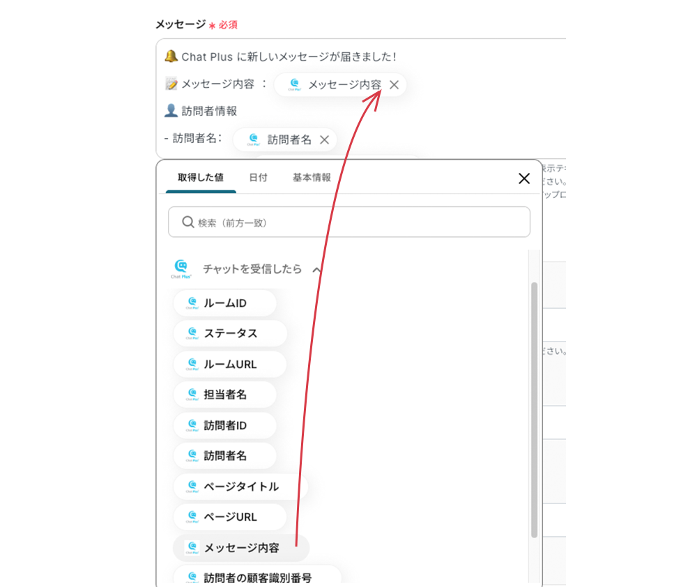 これにより、Chat Plus側で確認すべき重要な情報だけを選択的に連携し、情報過多を防ぎます。