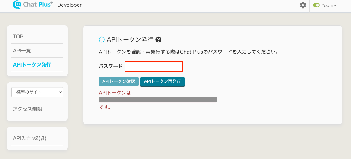 ※画像はChat PlusでAPIトークンを発行した後の画面です。