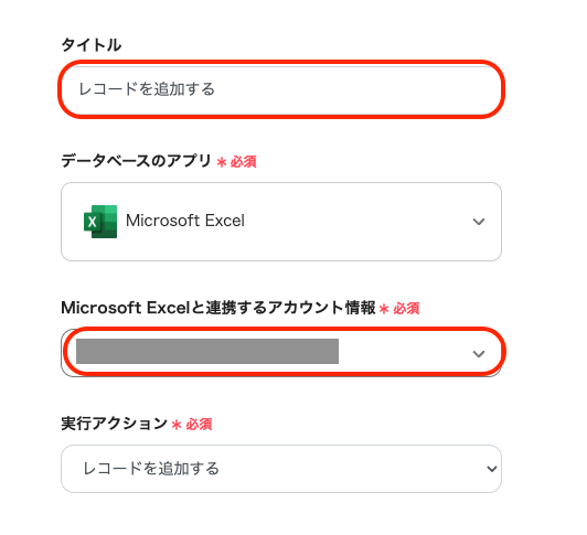 こちらは先ほどと同様にタイトルの任意編集とアカウント情報の確認を行い、アクションは変更せずページを下にスクロールしてください。