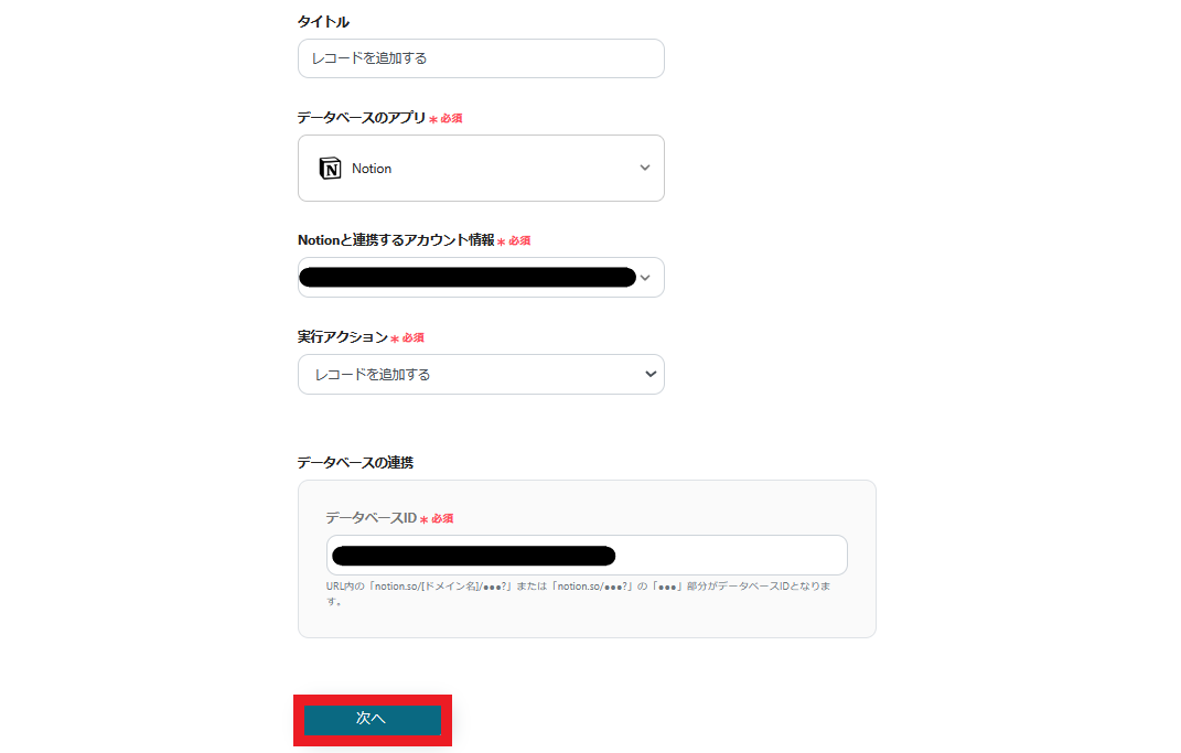 データベースIDは、入力欄をクリックすると候補が表示されるので、その中から選択してください。