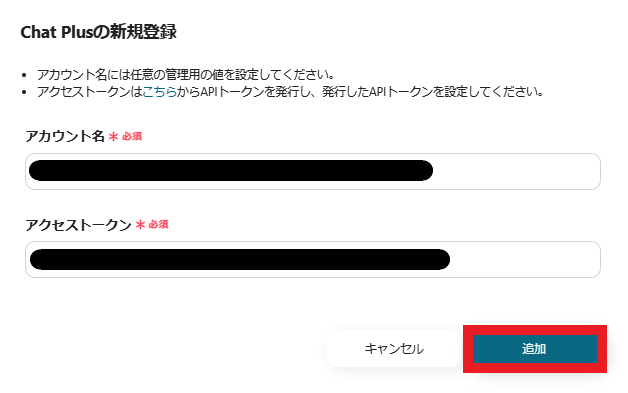 「追加」をクリックすると、Chat Plusのマイアプリ登録は完了です。