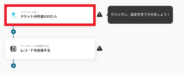 4.これで、【Chat Plusでチケットが作成されたらNotionにチケット情報を追加する】というフローが完成しました。