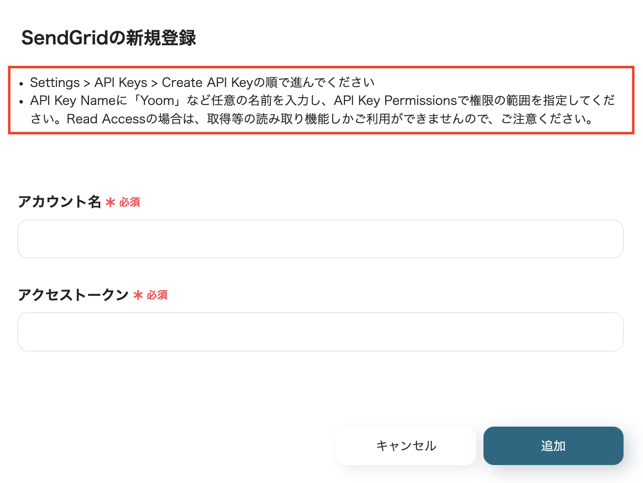 連携したいアカウントの「アカウント名」と、「アクセストークン」を入力しましょう。