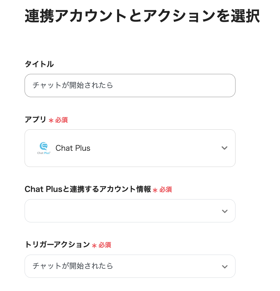 ・トリガーアクション:「チャットが開始されたら」を選択します