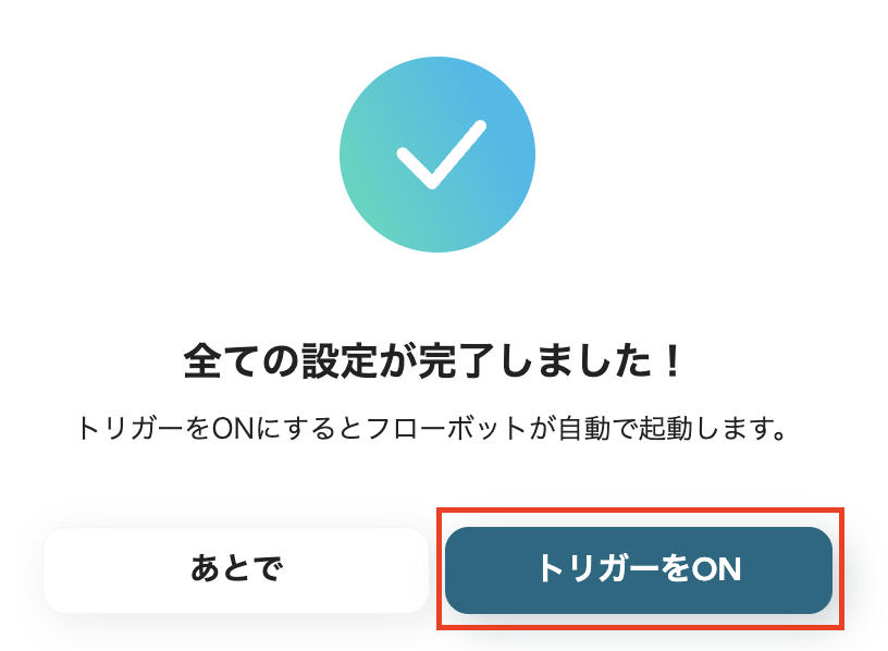 これで全ての設定が完了しました。トリガーを「ON」にして、動作確認をしましょう!