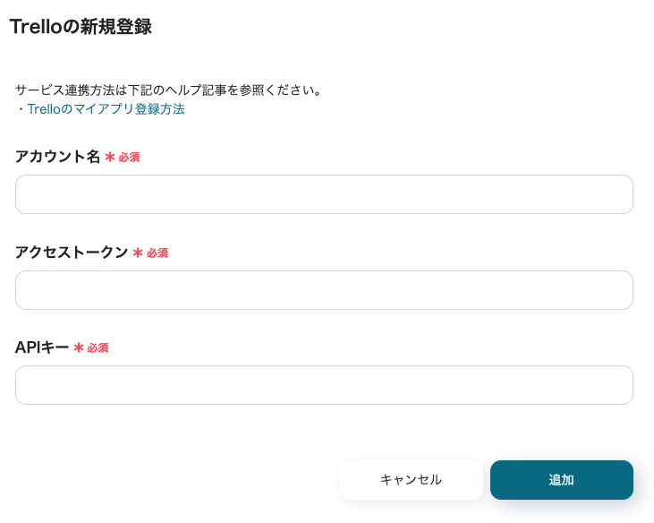 各項目の入力後、「追加」をクリックしてTrelloのマイアプリ連携を完了しましょう。
