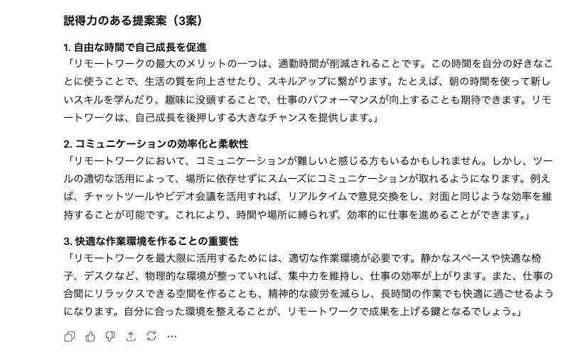 AIが、具体性の欠如を指摘したことにより、「通勤時間=自己成長の時間」「環境作り=物理的な機材」といった、読者が納得できる新しい情報が追加されました。