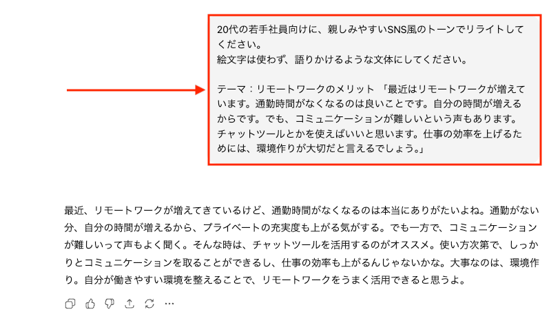 読者の属性にあわせた言葉の温度感に調整され、ターゲットに刺さりやすい文章に化けました。