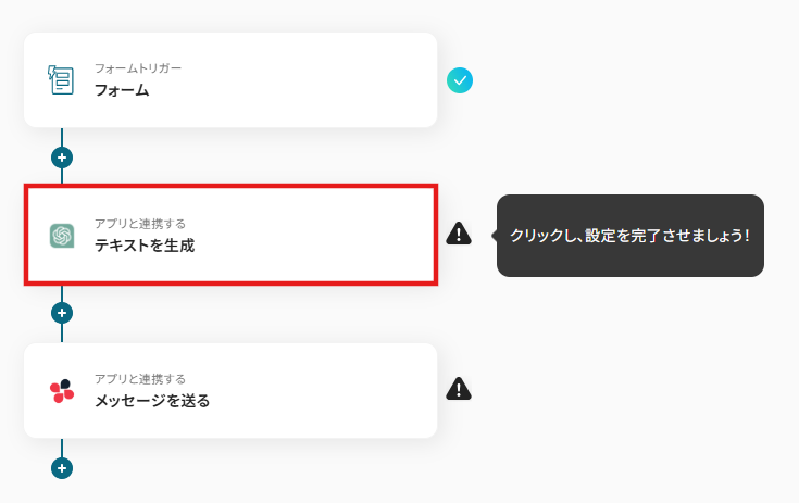 続いて、ChatGPTでテキストを生成するアクション設定を行います。