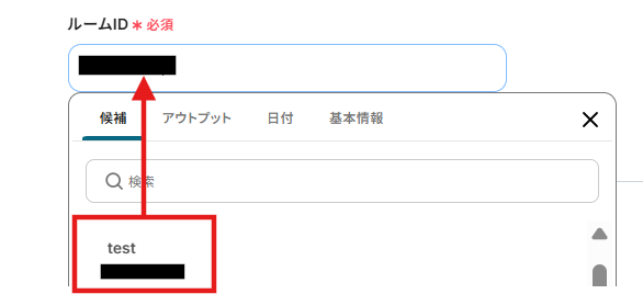 (3)メッセージを自動通知したい「ルームID」を候補から選択します。
