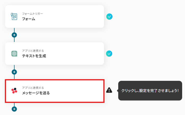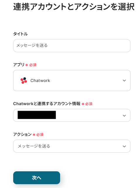 いよいよ最後の設定項目です!ChatGPTで自動生成したテキストを、Chatworkに通知する設定を行います。