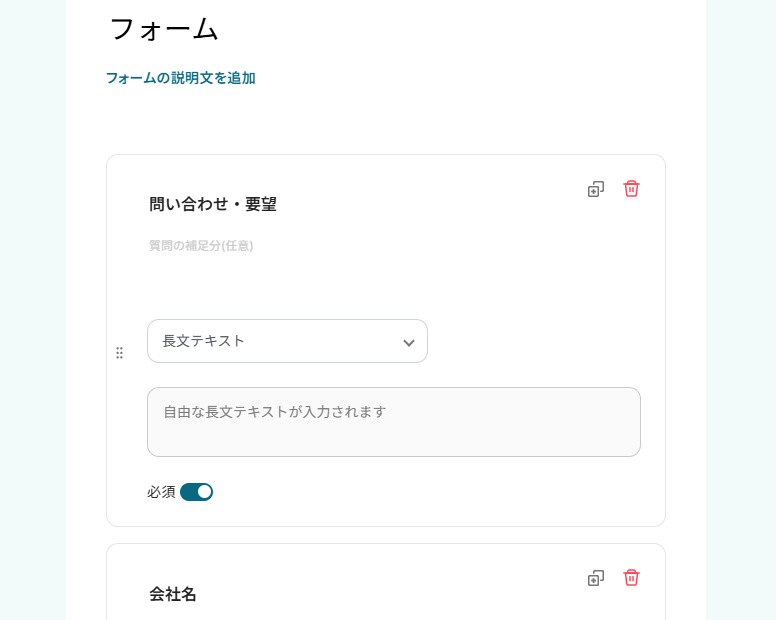 (1)コピーしたテンプレートの、「フォーム」をクリックしましょう。
