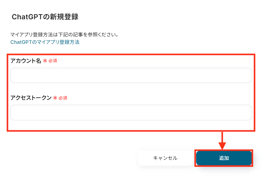 ステップ1: ChatGPTとChatworkをマイアプリ登録