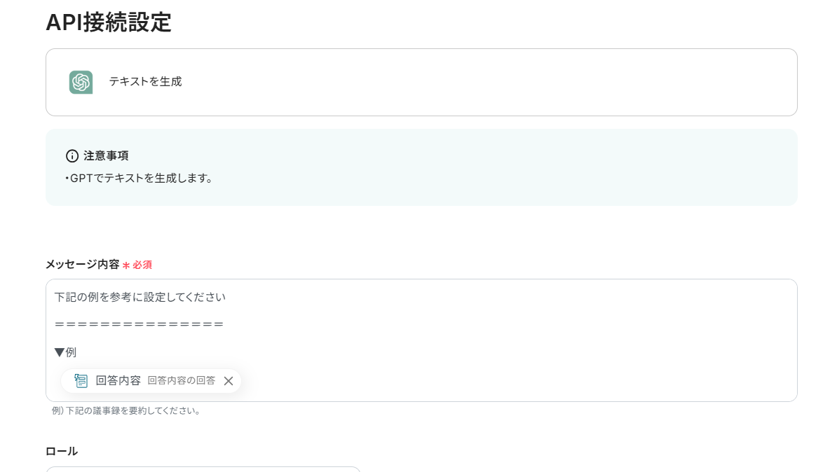 ChatGPTの生成で使用したい情報を選択して入力します。