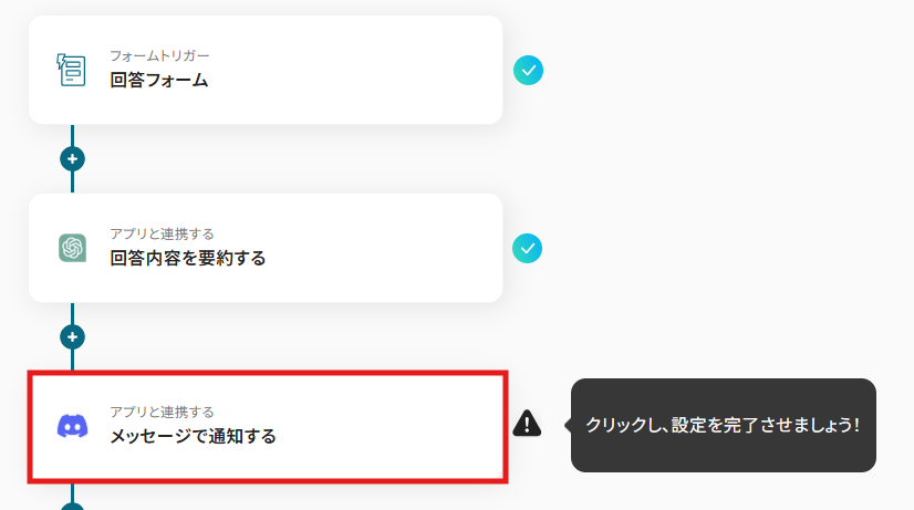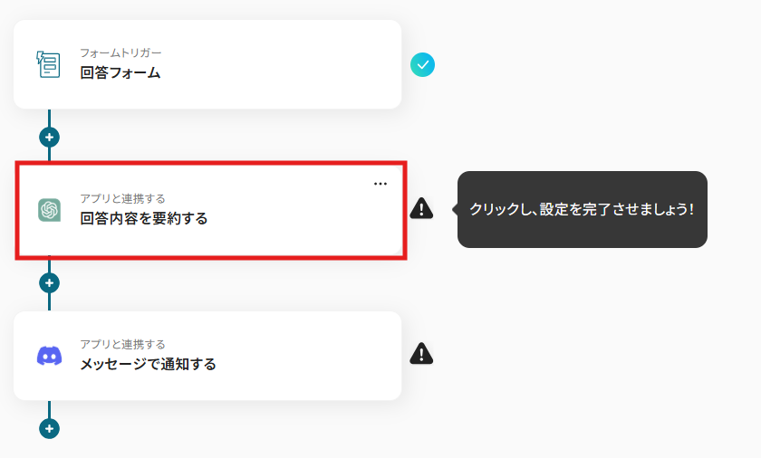 これで【フォームの回答内容をChatGPTで要約し、Discordに通知する】というフローが完成です。