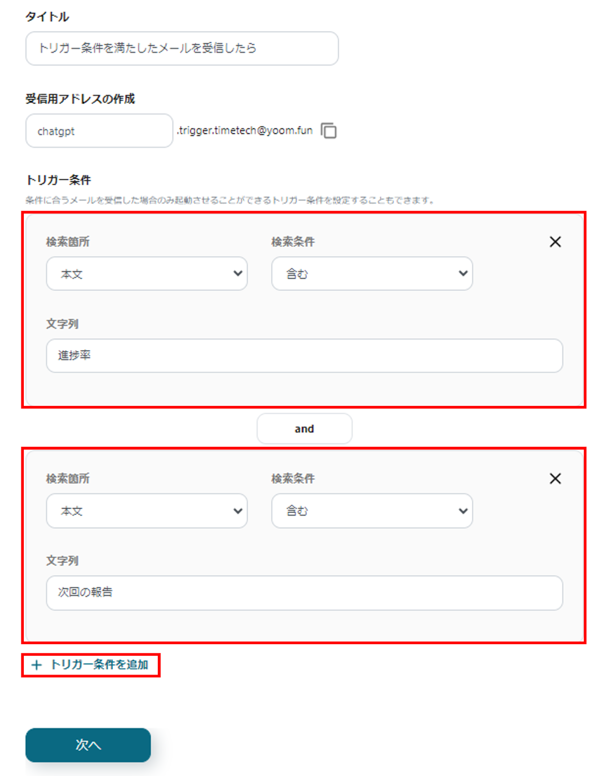 (4)トリガー条件の各項目を設定