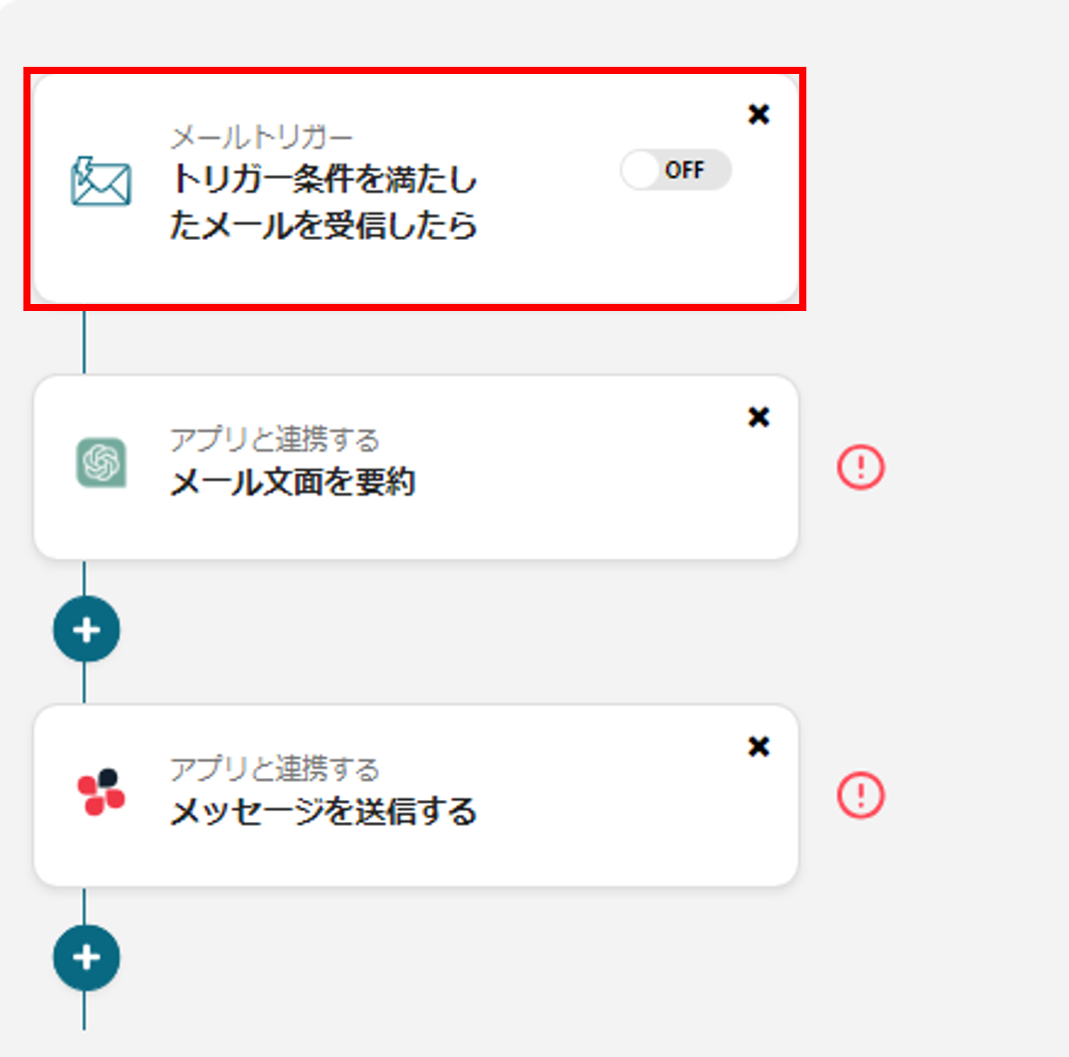 ここからは、「受信メールの内容をChatGPTで要約してChatworkに通知する」フローをご紹介します。