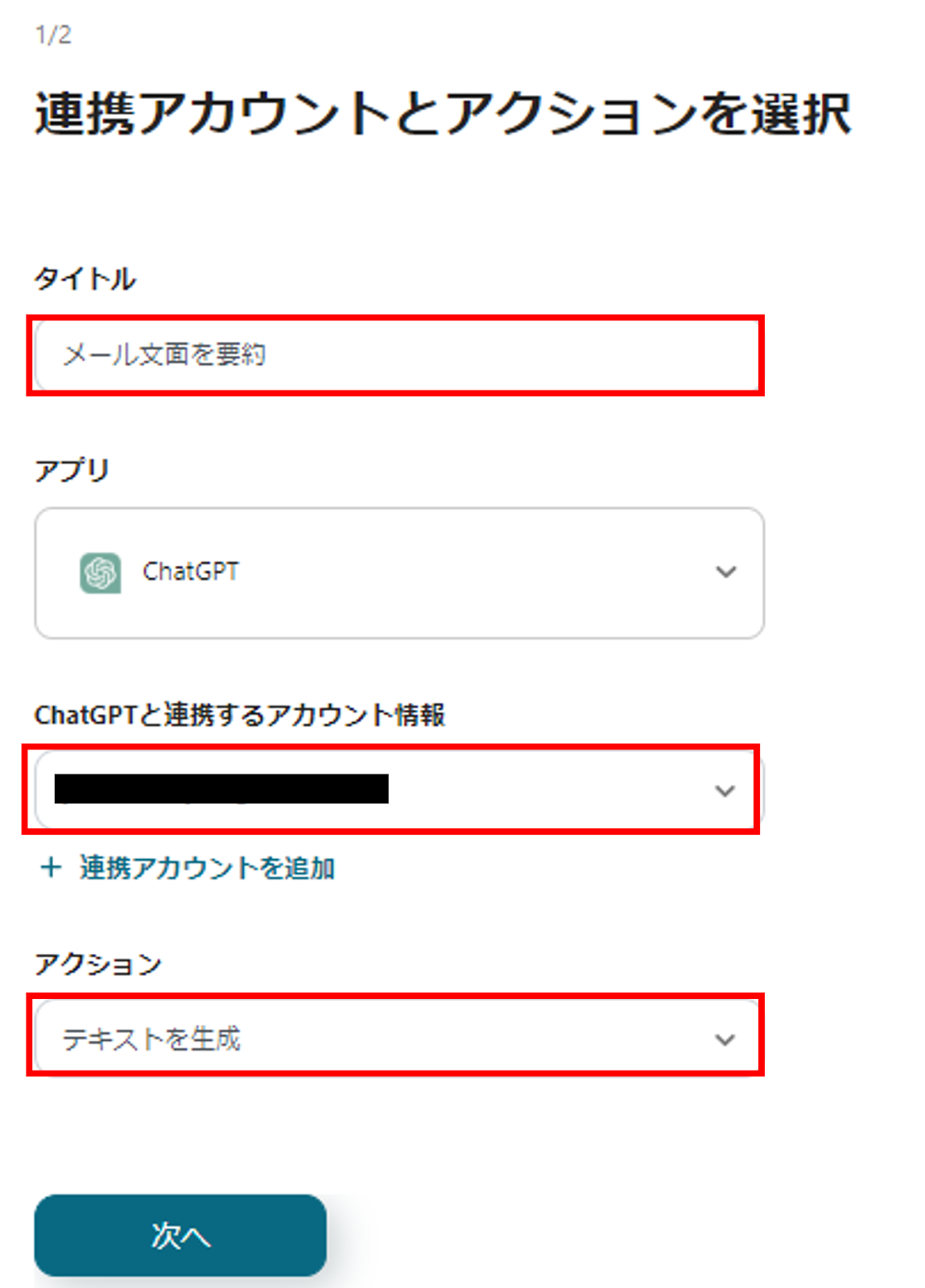 (3)ChatGPTと連携するアカウント情報が正しいかを確認