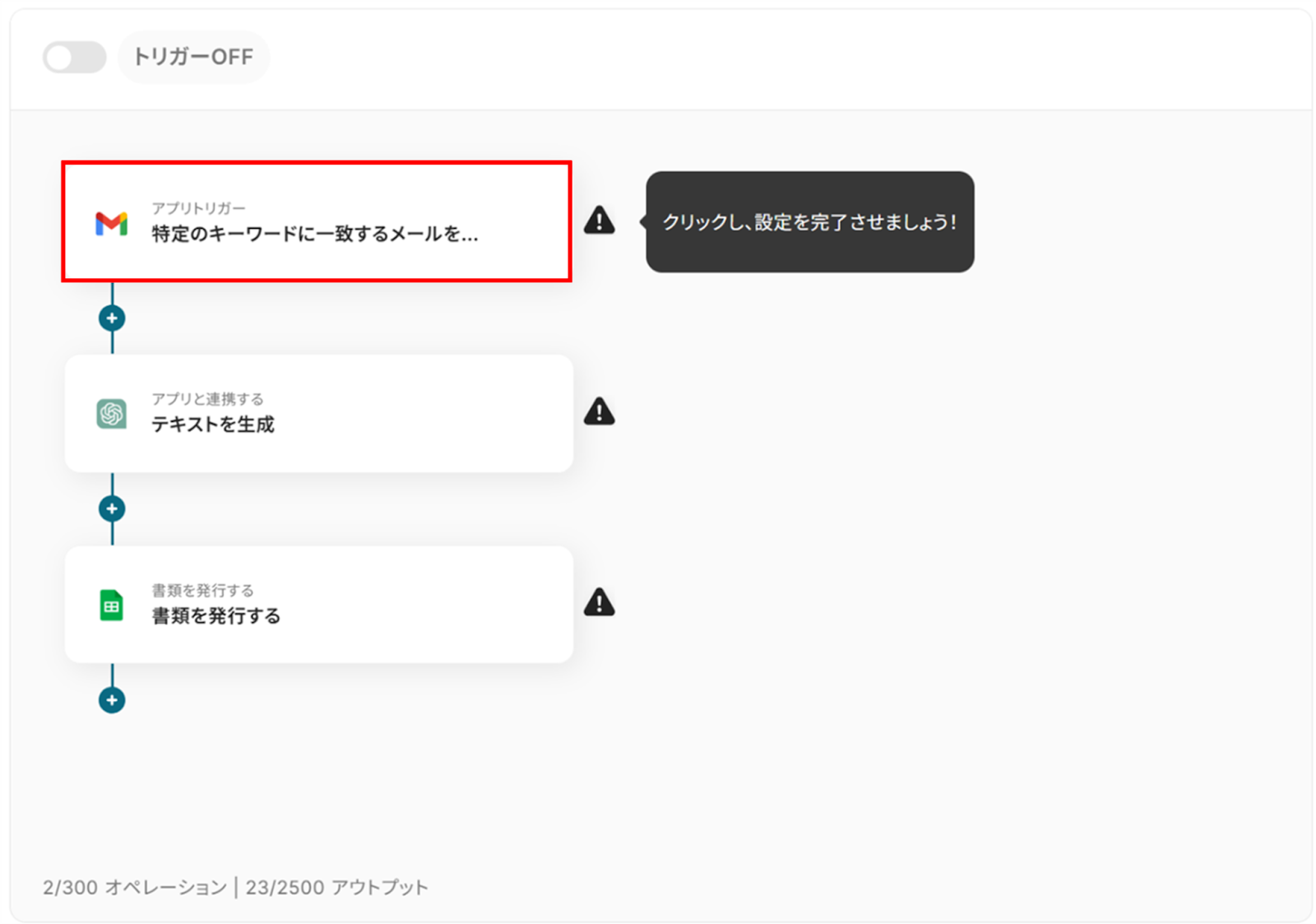 設定が完了すると以下のようなメニューが表示されるので、トリガーをONにします。